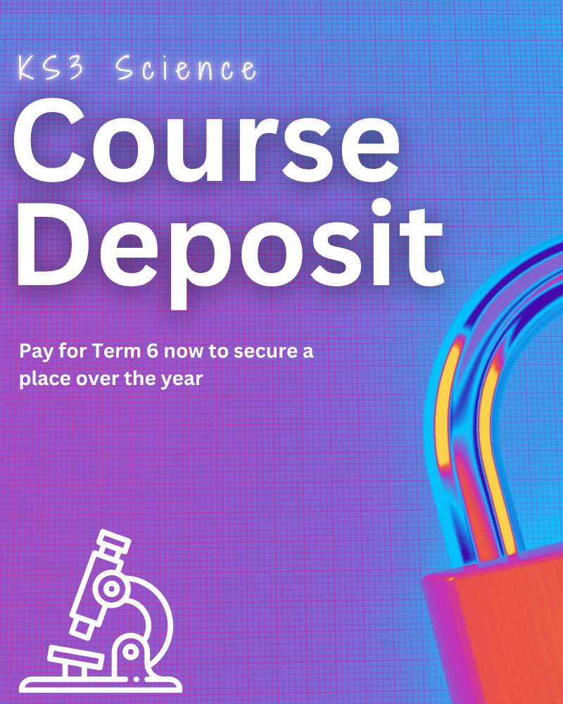 This deposit payment is for one Science course only eg Lower KS3 Chemistry. If you wish to reserve more than one seat (e.g. for both LKS3 Chemistry and LKS3 Physics) please purchase a deposit for each course.